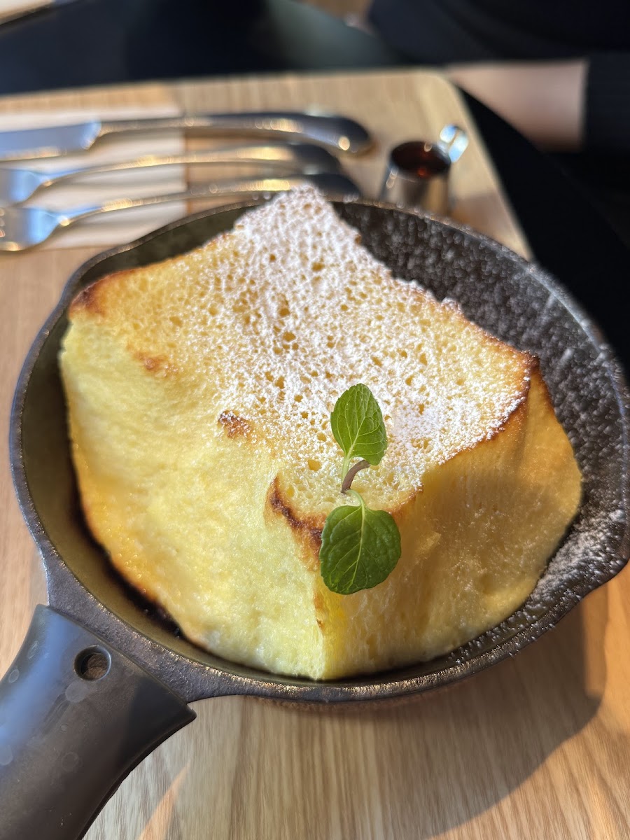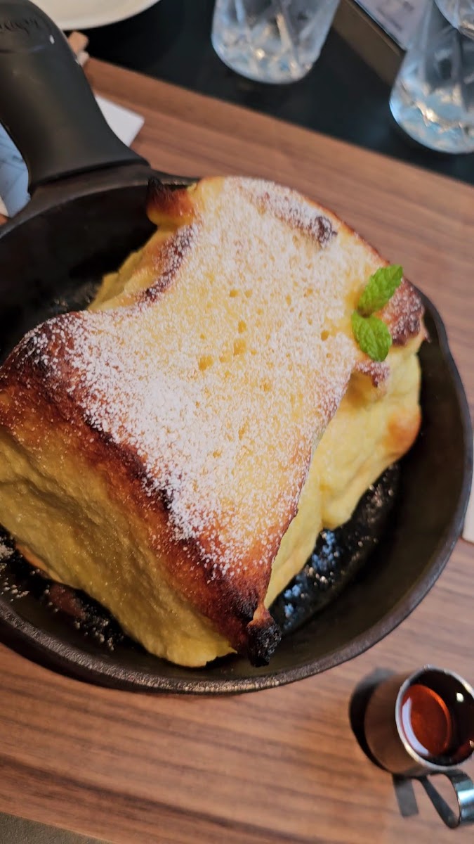 The café’s standout offering is its incredibly thick French toast, often served in a cast iron skillet. The toast strikes a balance with a lightly crisp exterior and a soft, almost pudding-like inside that pairs beautifully with vanilla ice cream or whipped cream. It’s a treat that takes some time to prepare (around 20 minutes), which suggests they make it fresh to order rather than rushing it. While the toast is rich and sweet, it does not come overloaded with toppings; the simplicity here feels intentional, letting the texture and flavor speak for themselves. Syrup is provided on the side for those who want to add a touch of extra sweetness.